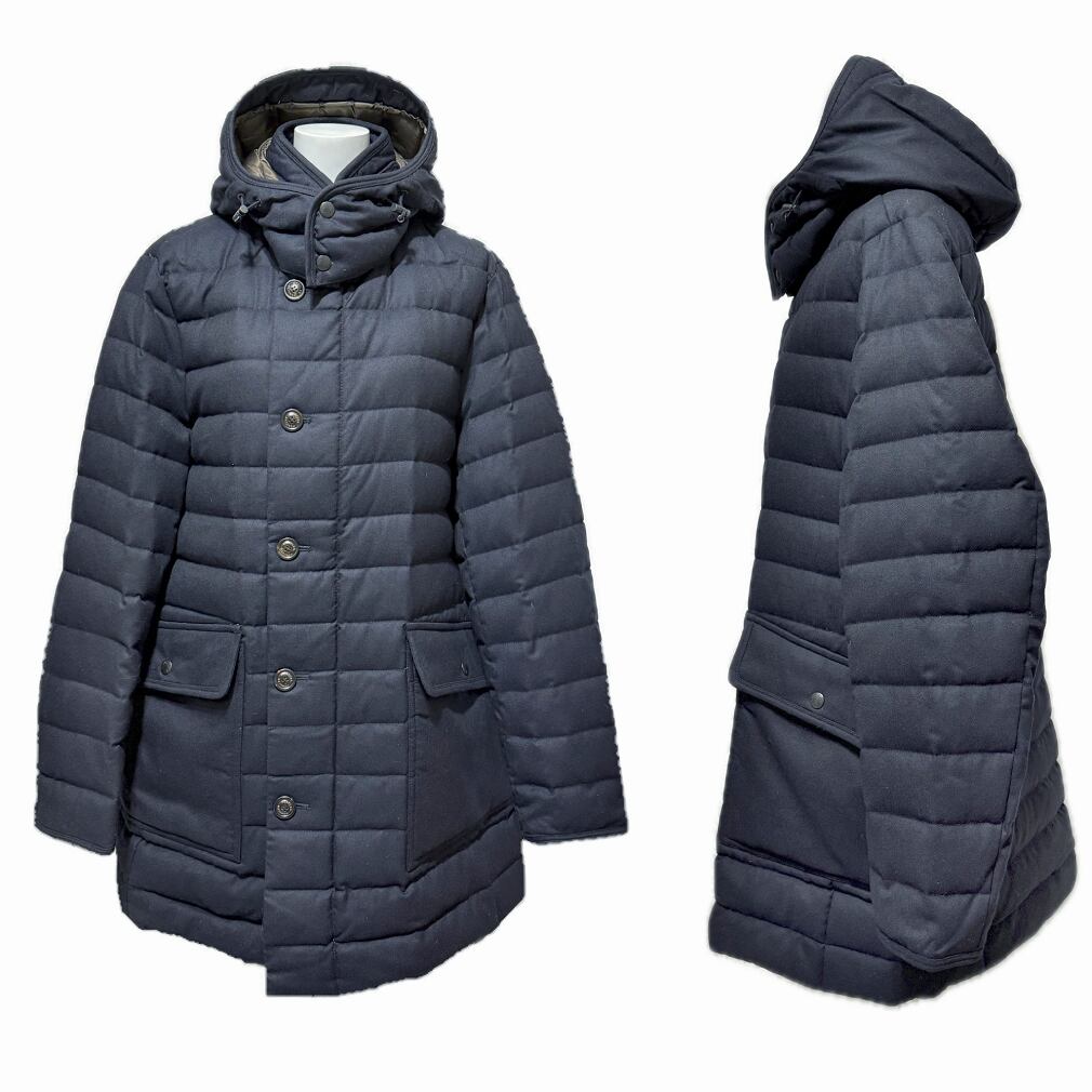 上質なダウンウェアの代名詞、MONCLER(モンクレール)より、エレガントで機能的なネイビーフーデッドダウンコートが入荷しました。外側はマットな質感の上品なウール生地、内側には高品質グースダウンをたっぷりと封入し、驚くほど軽量なのに抜群の暖かさを実現。前立てはボタン+ジップの二重構造で、冷気をしっかりブロック。スマートな印象を与えるストレートラインで、ビジネス・通勤・カジュアルまで幅広く活躍します。