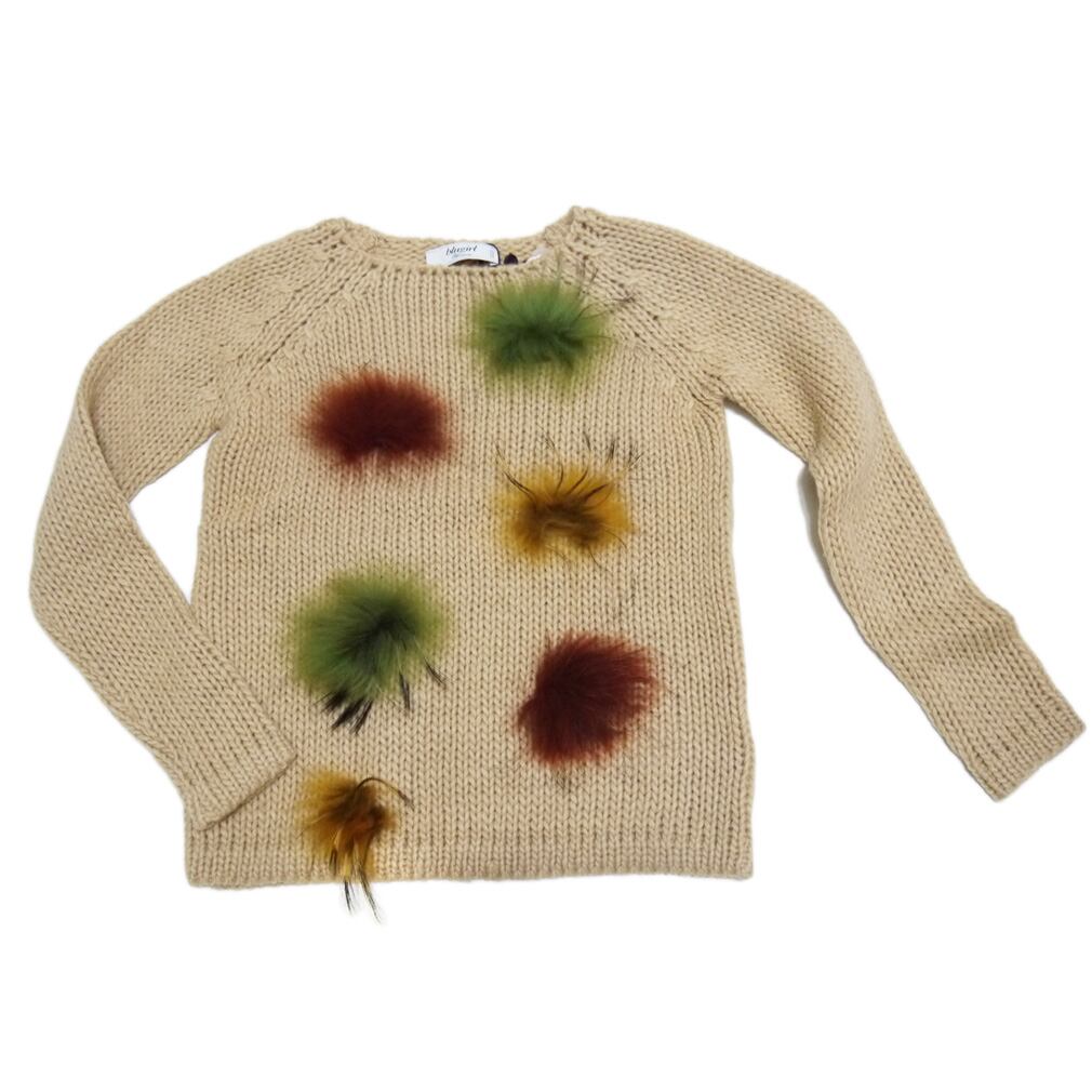 カラフルなリアルファーのポンポンが可愛らしいブルマリンのセーター。