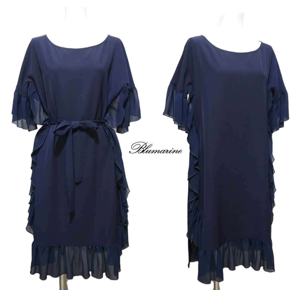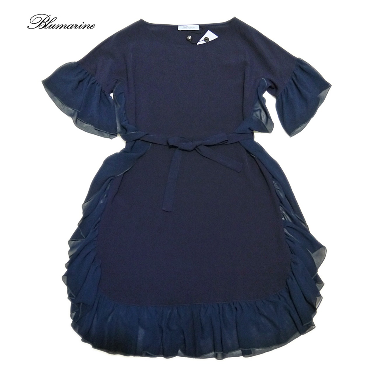 新品ブルマリンBlumarineフリル半袖ワンピース ネイビー #38