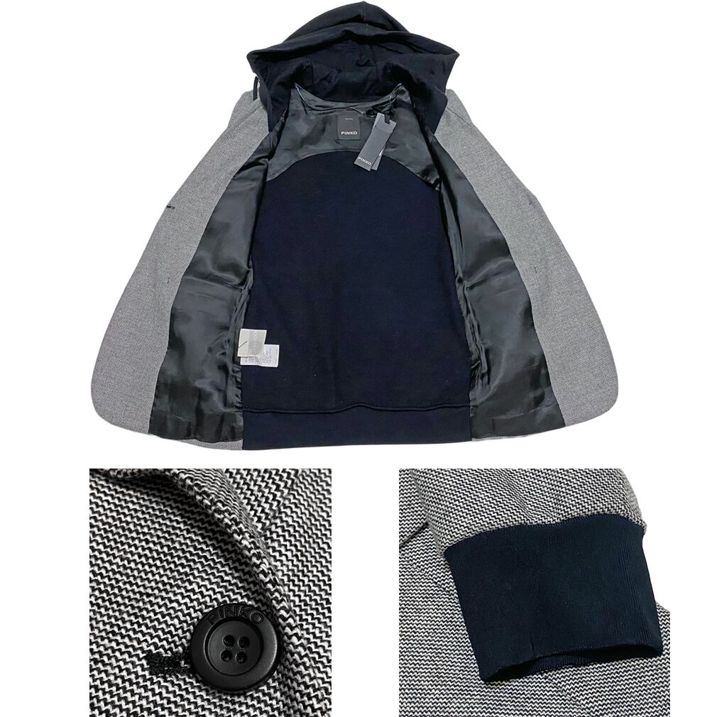 新品ピンコPINKOフード付ツイード テーラードジャケット 黒#38