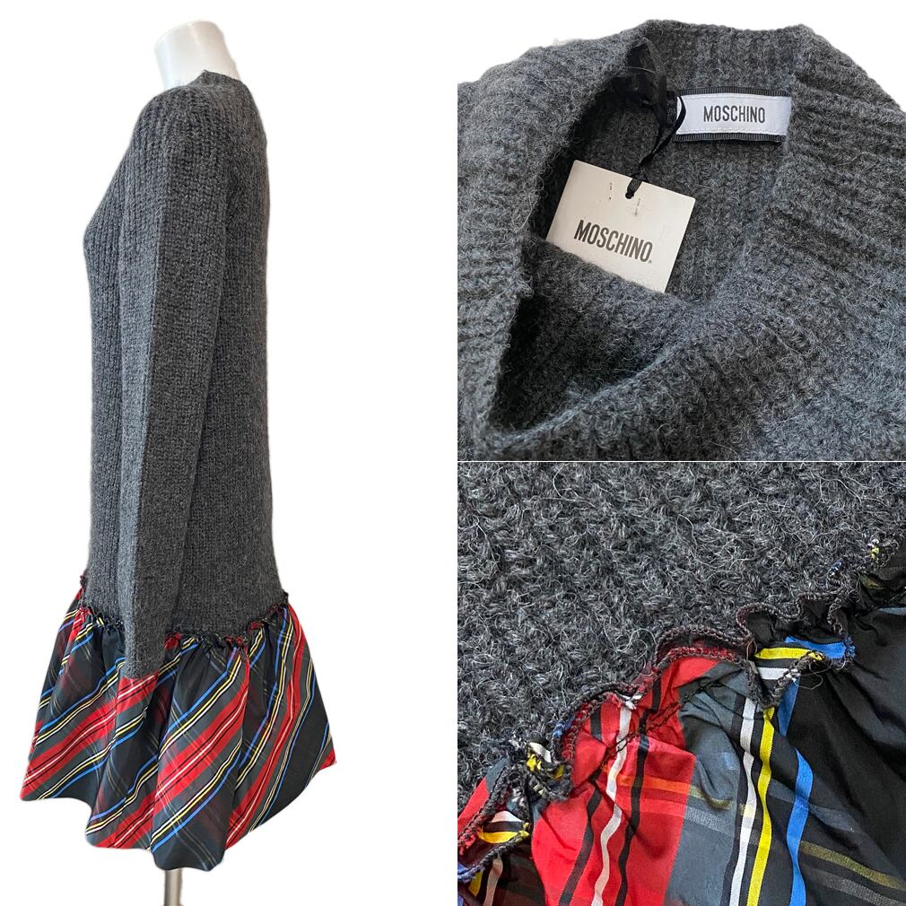 新品モスキーノMOSCHINOチェック柄アルパカニットワンピース 38