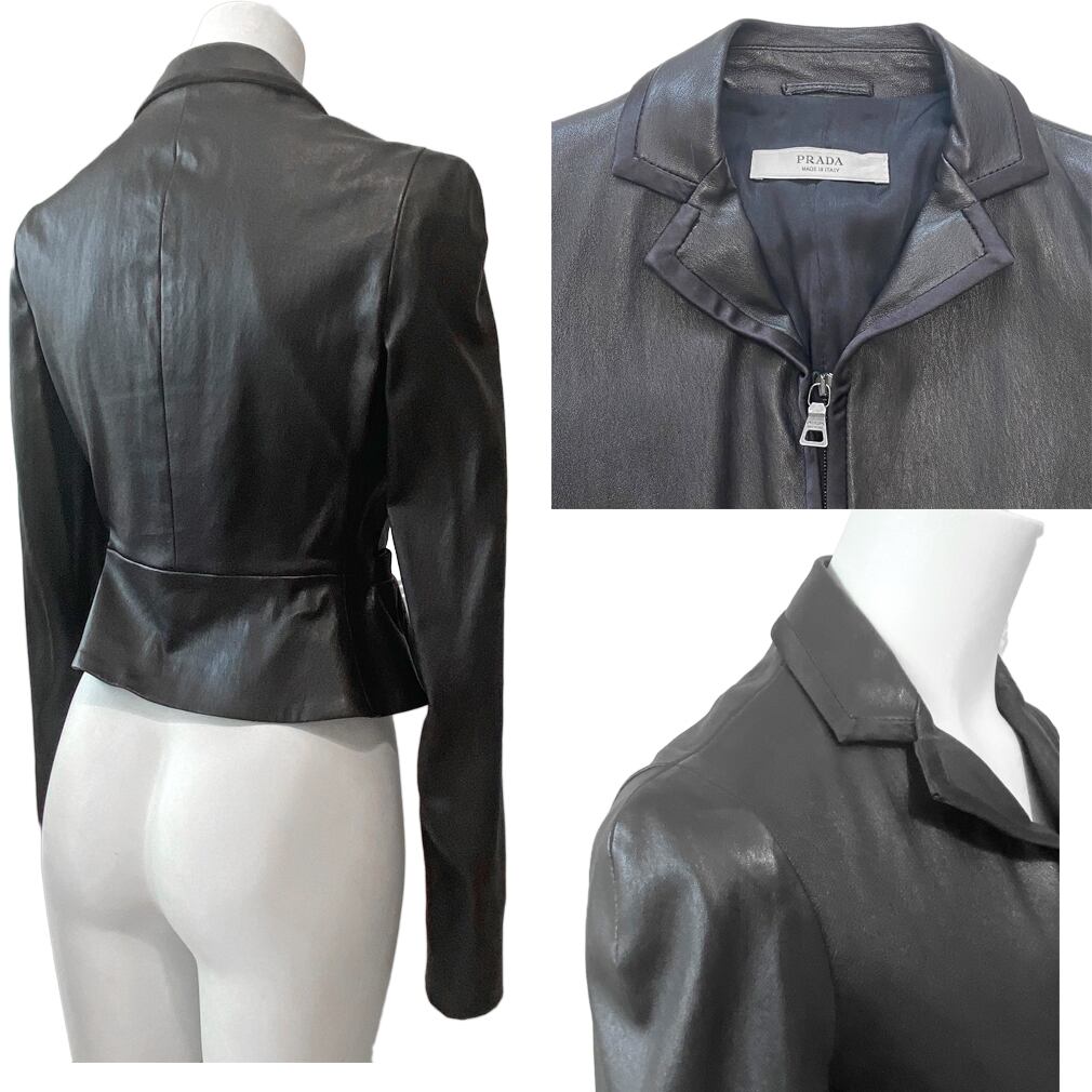 ピッタリと体にフィットするセクシーなデザインは、上質で柔らかい革だからこそ!細部にまでこだわったプラダのレザージャケット。タイトなワンピースと合わせてボンデージ風コーデやファーのジレとの重ね着もおススメ。