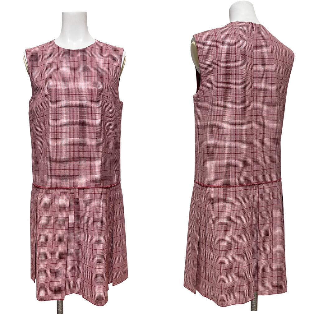 ボルドーのグレンチェックが上品で大人可愛いがRED VALENTINOらしいプリーツワンピース。