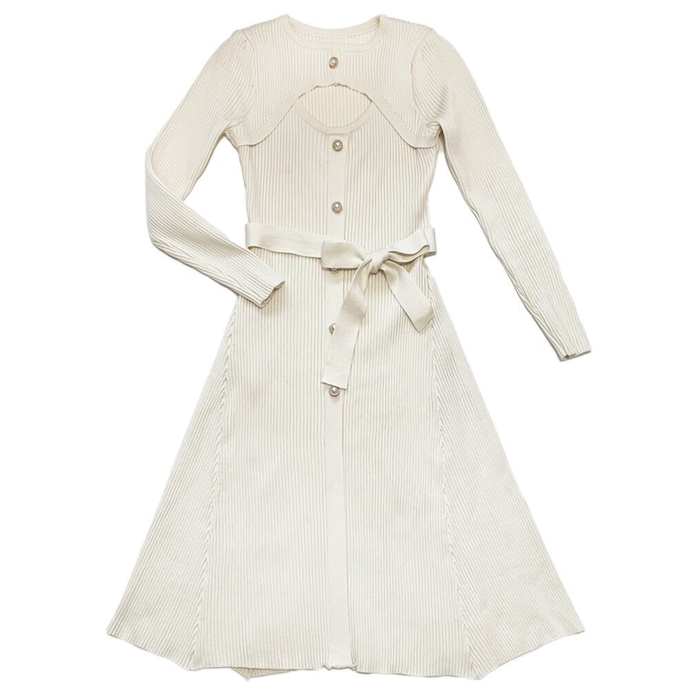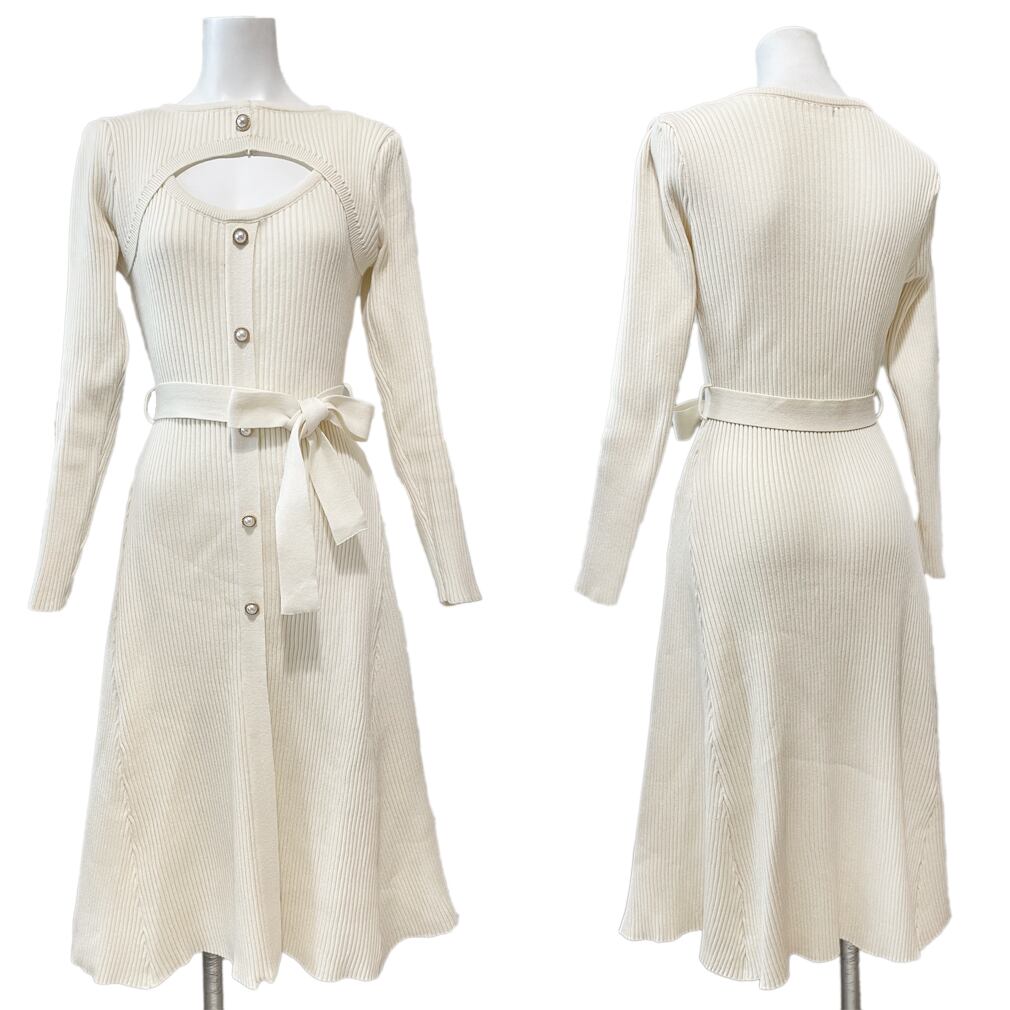 チラリズムを刺激するセクシーな胸元の「小窓」に、男性陣はくぎ付け!すれ違う男性の目線がいつもと違う!よく知った男友達にも「今日なんか可愛いね♪」って言われたりetc...着るだけでイイ女になれる超絶モテワンピースです。しかも着心地も楽!!!高め位置のベルトがスタイルアップ効果&イイ感じにぽっこりお腹をカバーしてくれるし、りヴニットで体のラインを強調してセクシーなのに、座った時は気になる三段腹をこれまたイイ感じにハリのあるリブニットがゆるく波打ってしわになって誤魔化してくれるんです。細身さんもポッチャリさんにも似合って、セクシーと着心地を兼ね備えてる洋服なんてそうそうありません。夏以外の3シーズン対応でお洗濯もお家でできるお素材です。