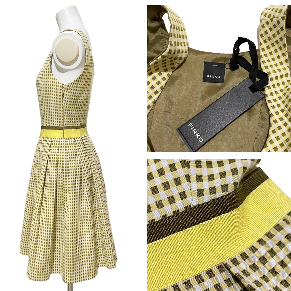 新品ピンコPINKOギンガムチェック フィット&フレアーワンピース黄色#38