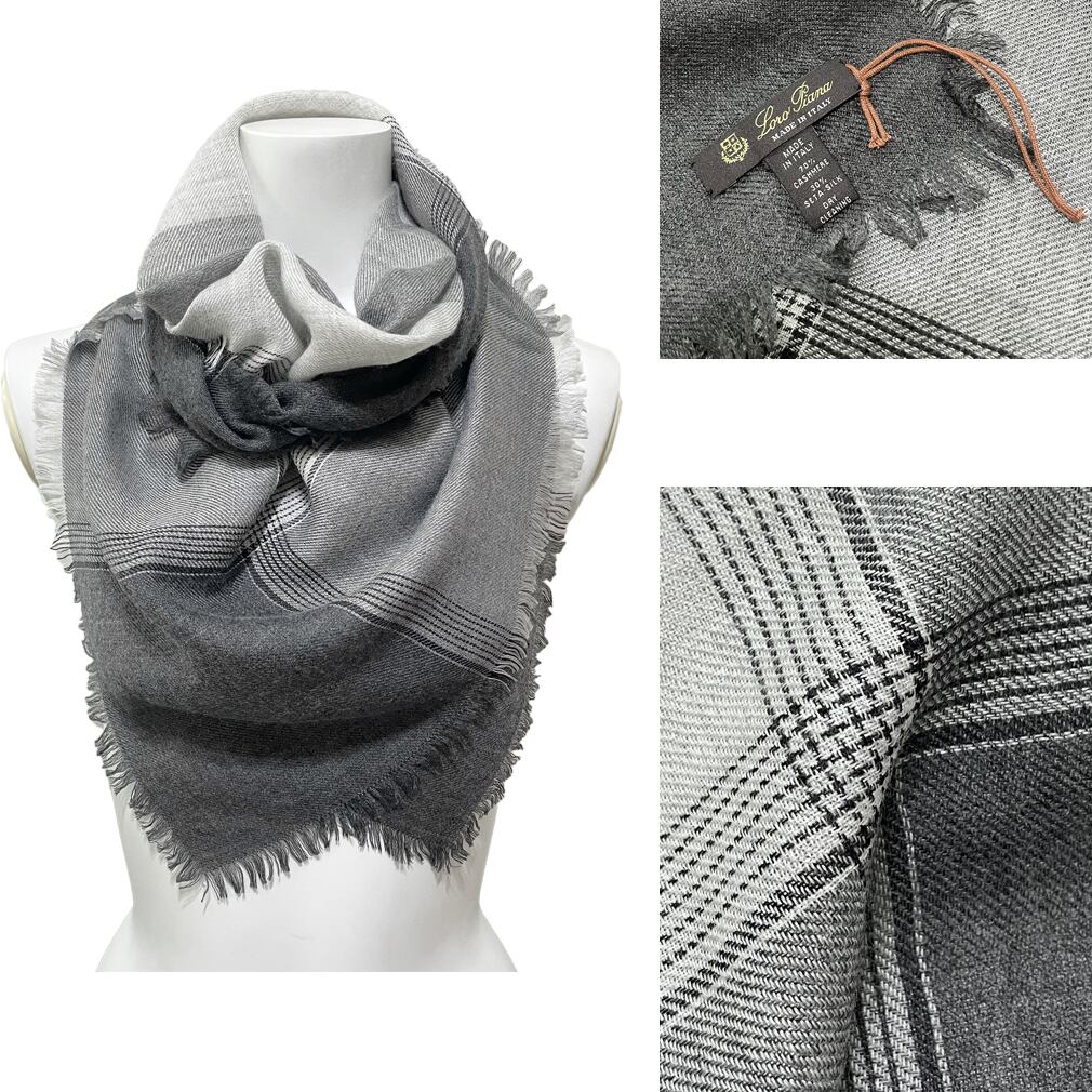 新品ロロピアーナLoro Pianaカシミア×絹ブロックチェックスカーフ グレー